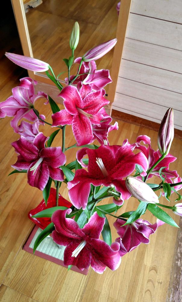 美しい百合の花頂きました 凄く綺麗な色で香りがお部屋中に〜