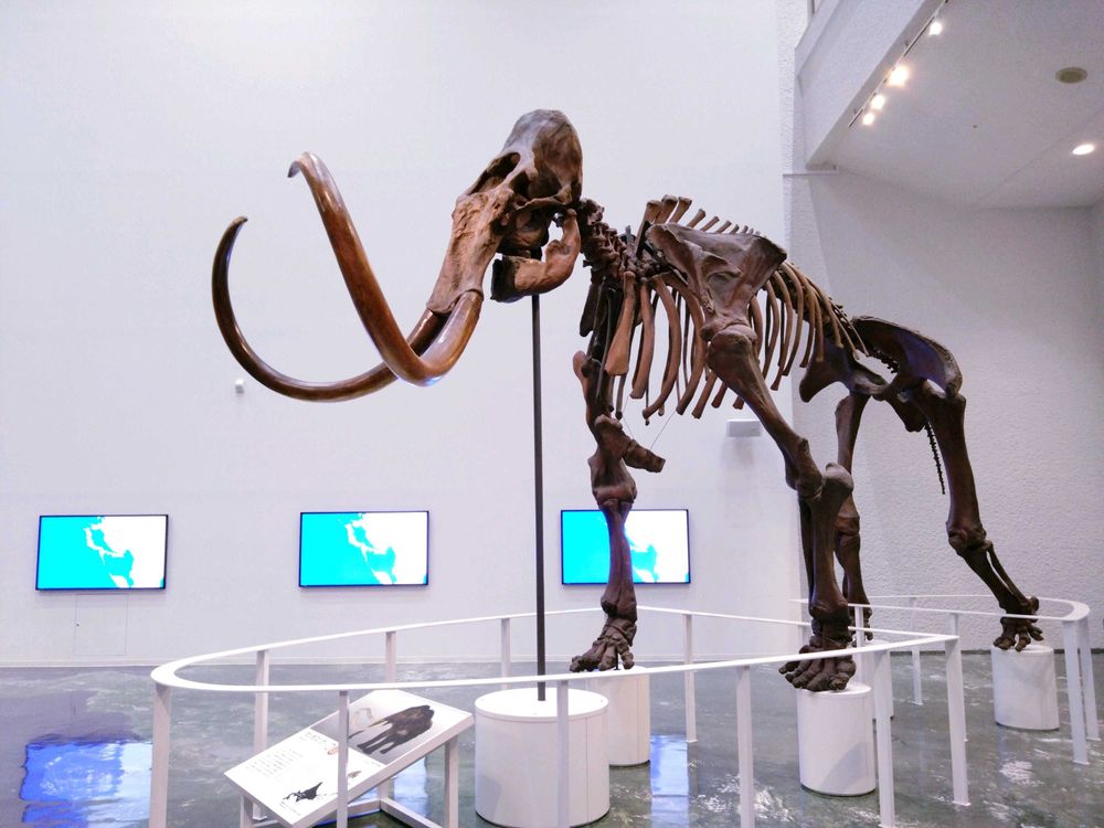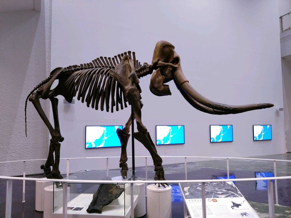 ナウマンゾウとマンモスの骨格標本越しのモニターで北海道のお勉強🤓