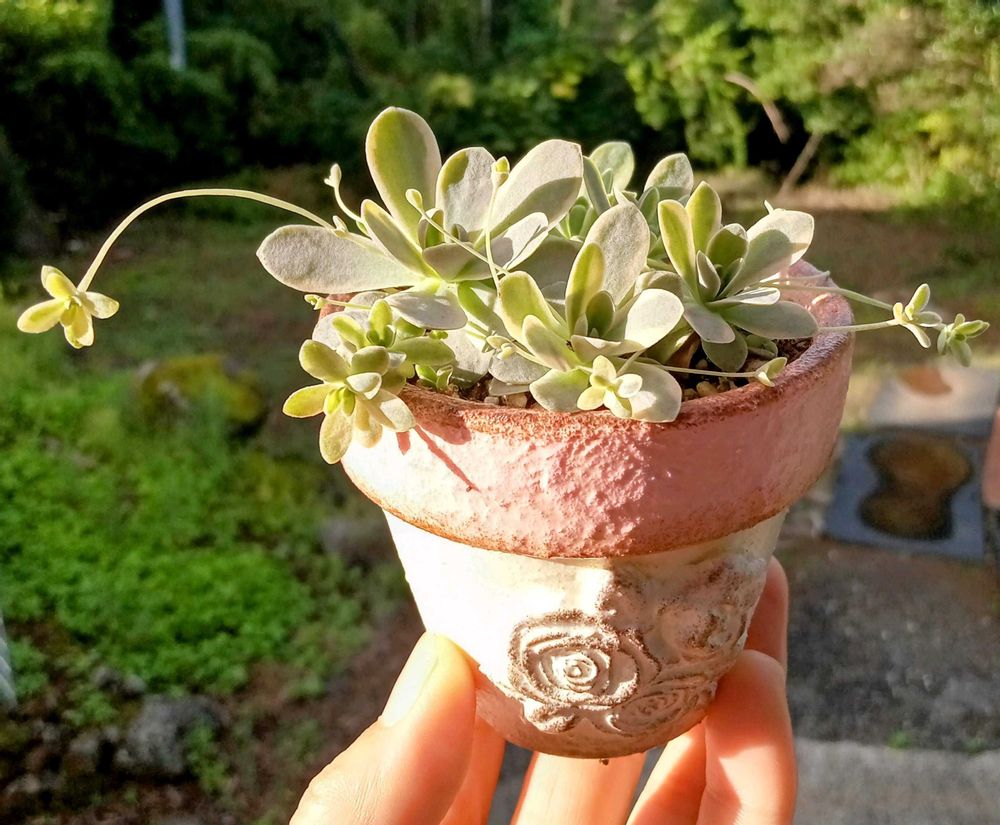 GSけいこさんに頂いた子持ち蓮華か朝日を浴びて綺麗〜😍