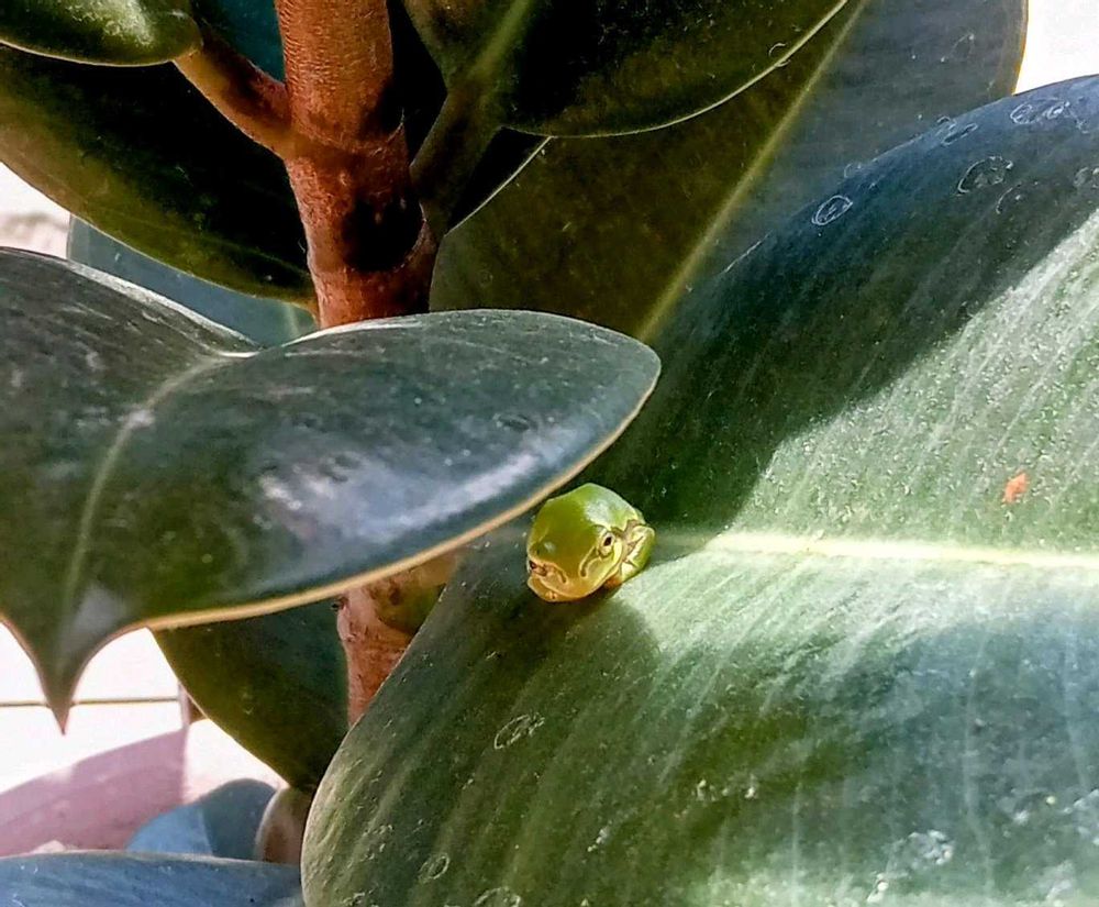 さん🐸✨こんばんは🐸✌️周りが田んぼなので自然にベランダに集まってくるのよ😂私の観葉植物ちゃんたちが日除けに最適みたい🤭