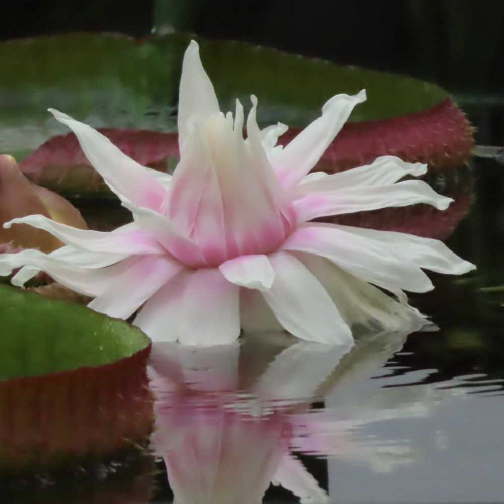 オオオニバス、パラグアイオニバス、ロングウッドオオオニバスの3品種あります!共に夜咲きで初日は白花、2日目ピンク花です。