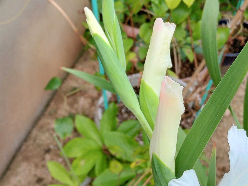 グラジオラスは五つ球根を植えたけど咲きそうなのは2本だけ…でもエエよね𓂃🌿𓈒𓏸