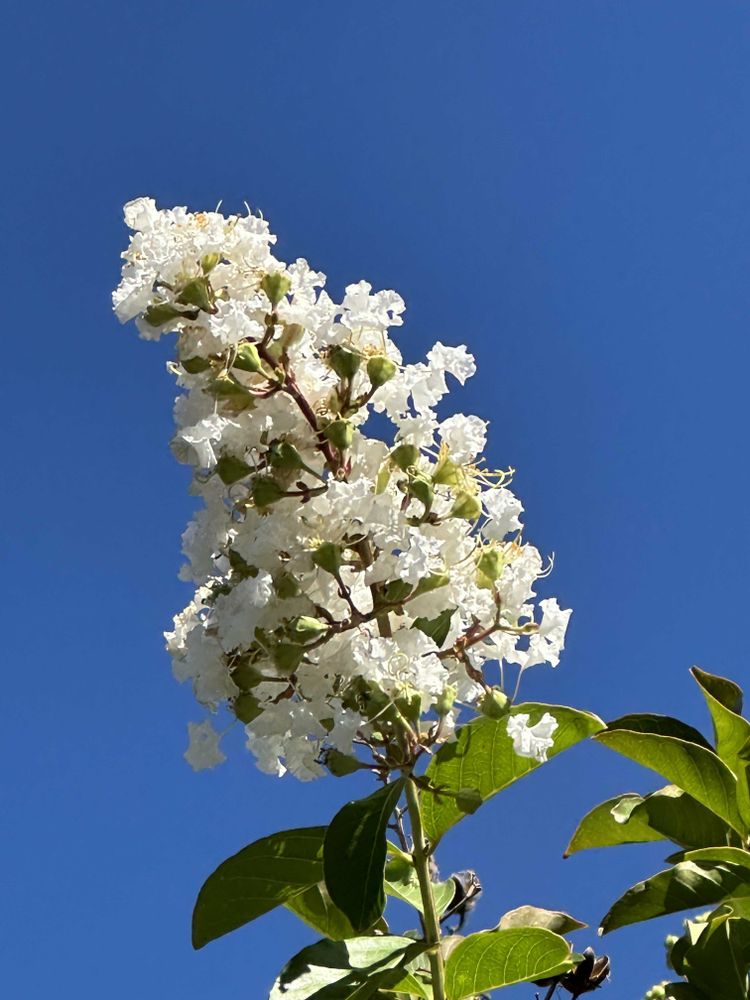 @ Yumiko (California U.S.A ) さん 🙂 Good morning Thank you fova message ☺ Tha blue sky Color white Lagerstroemia indica Wikipedidiaかな ここ滑川市にて、朝方の散歩中 🎶MI KA KE RO🎶 Splendid a flower Yumiko さん Tim hot summer PA RI Olympic 📺放送を。 🙇🙇🙇🚶