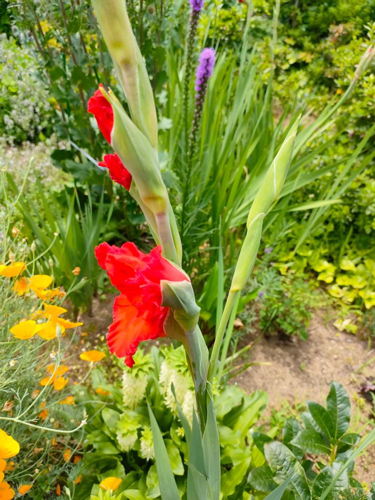❤️色のグラジオラスさんは、1本の茎から、2本出てます。💦