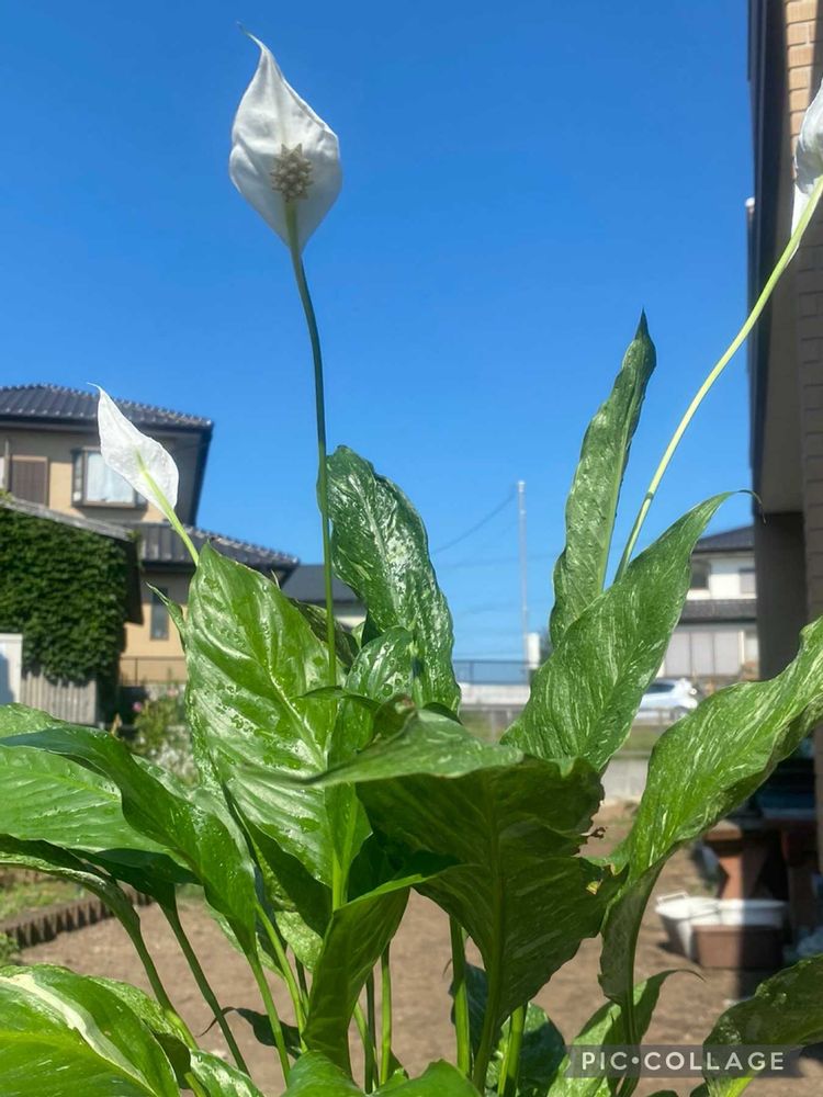 スパティフィラム(斑入り)の花が咲きました♪