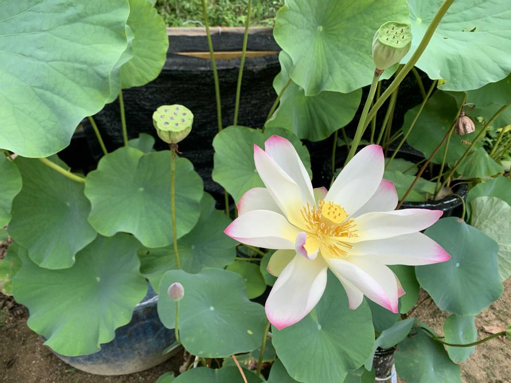 茶碗蓮🪷小舞妃の5番花3日目😀左下に6番目が見えてますが、他の鉢も含めて見えてません😅💦家庭菜園の管理機の修理が高くつきそうと言うことで、中古の管理機を購入しました😅やっぱ機械ですね🎶😁