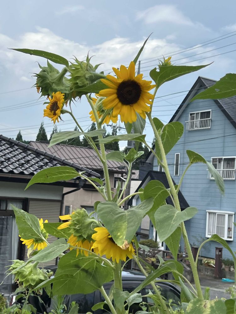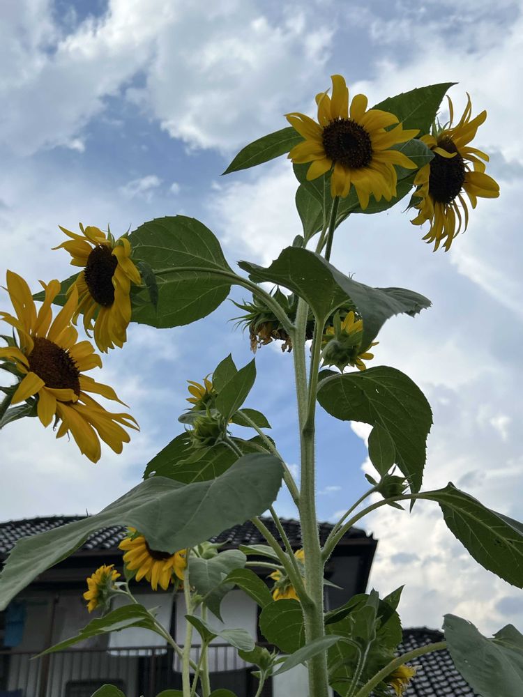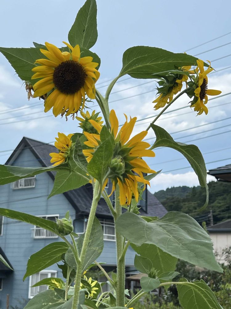 背丈は私と同じくらいですが、房咲きになってる向日葵🌻は、見上げるほどでした