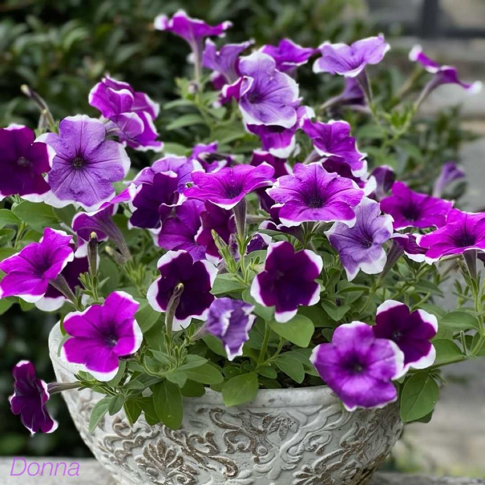ペチュニアさん☀️😵💦中がんばって咲いてるね。水のやりすぎはNG乾かしすぎもクタッとなってしまうし結構気難しい子ですよね💠💠💠