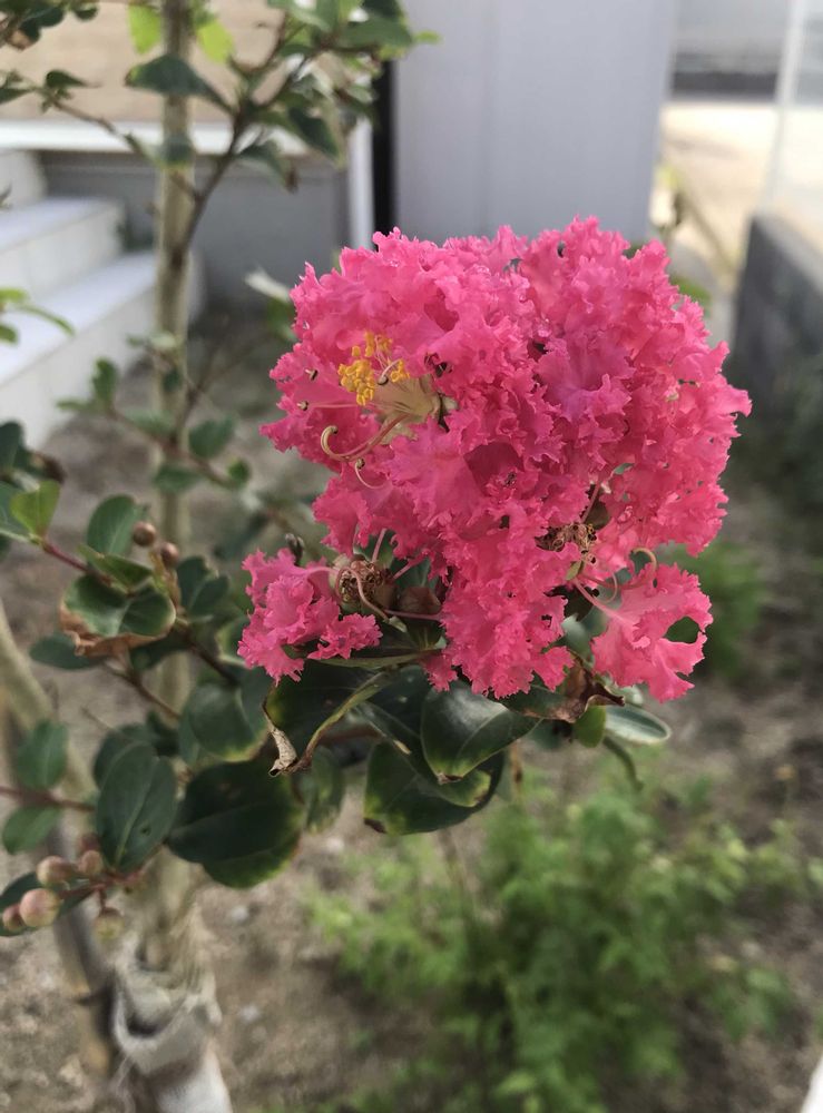 冬に植えたサルスベリが咲きました❣️🌸 初めてのお花です🌸とても嬉しい〜🥺🥺