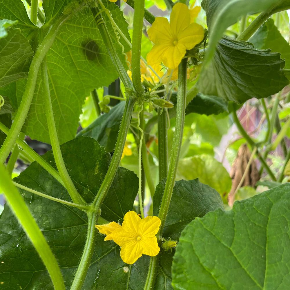 モミジアオイとキュウリ🥒のコラボ夏🎐ですねぇきれいです🪿💨