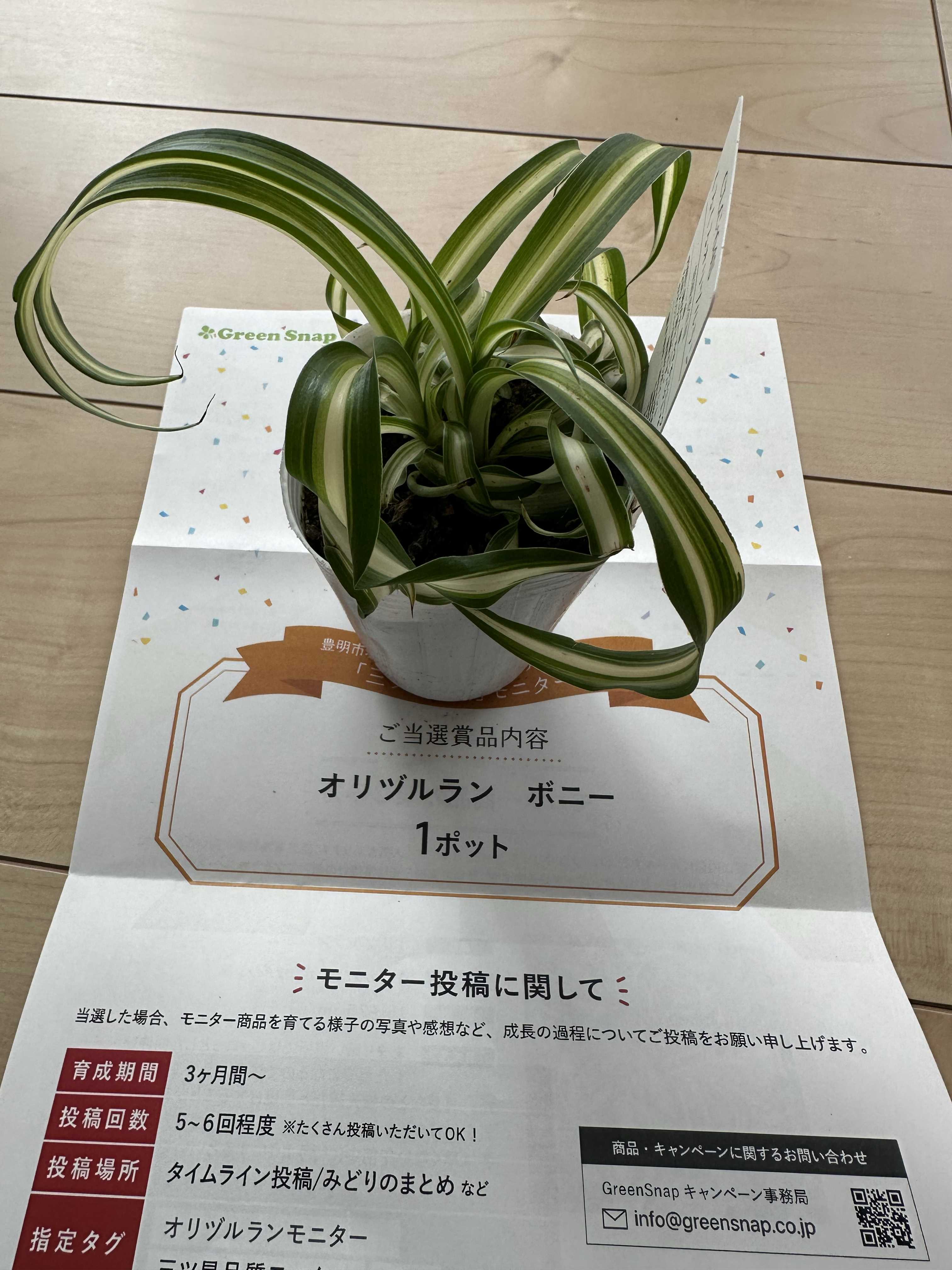 オリヅルラン ボニーが、送られて来た。当選したんだ。育てやすそうだぞ。