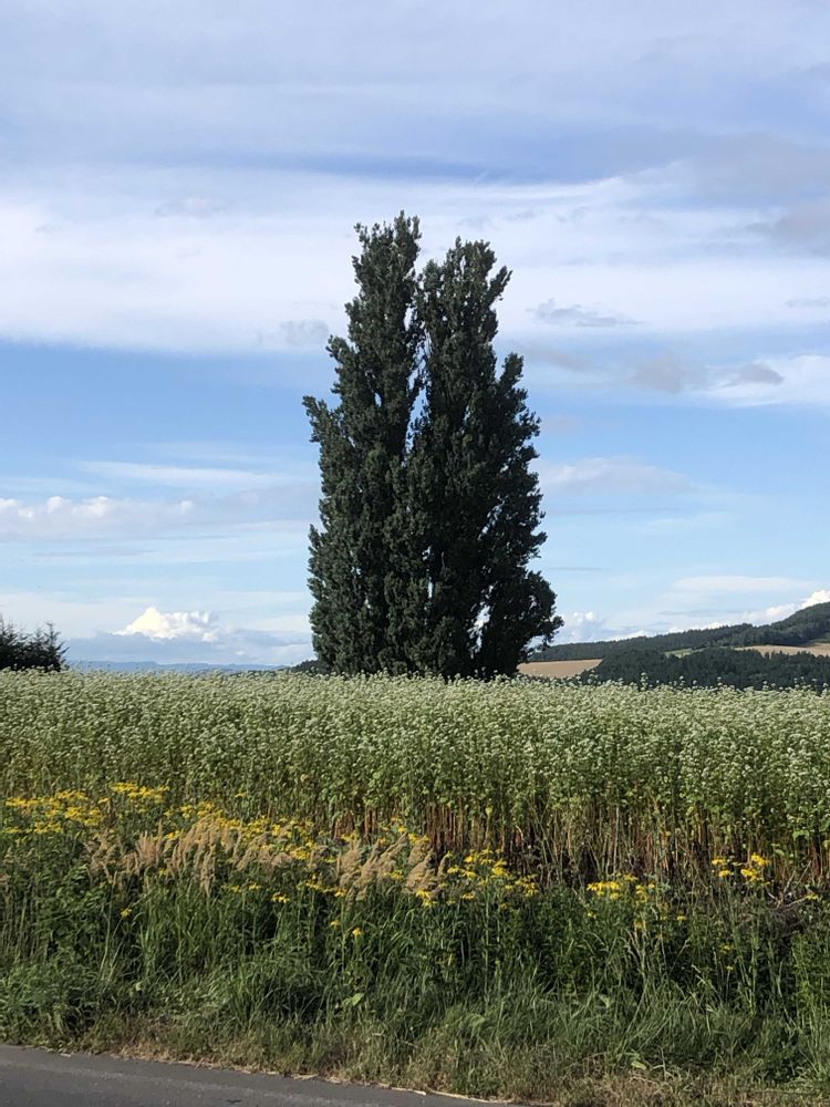 北海道美瑛にて「ケンとメリーの木」とジェットコースターのような道路をパチリ!📸🌲🌲🎢😱😄🌞✌️