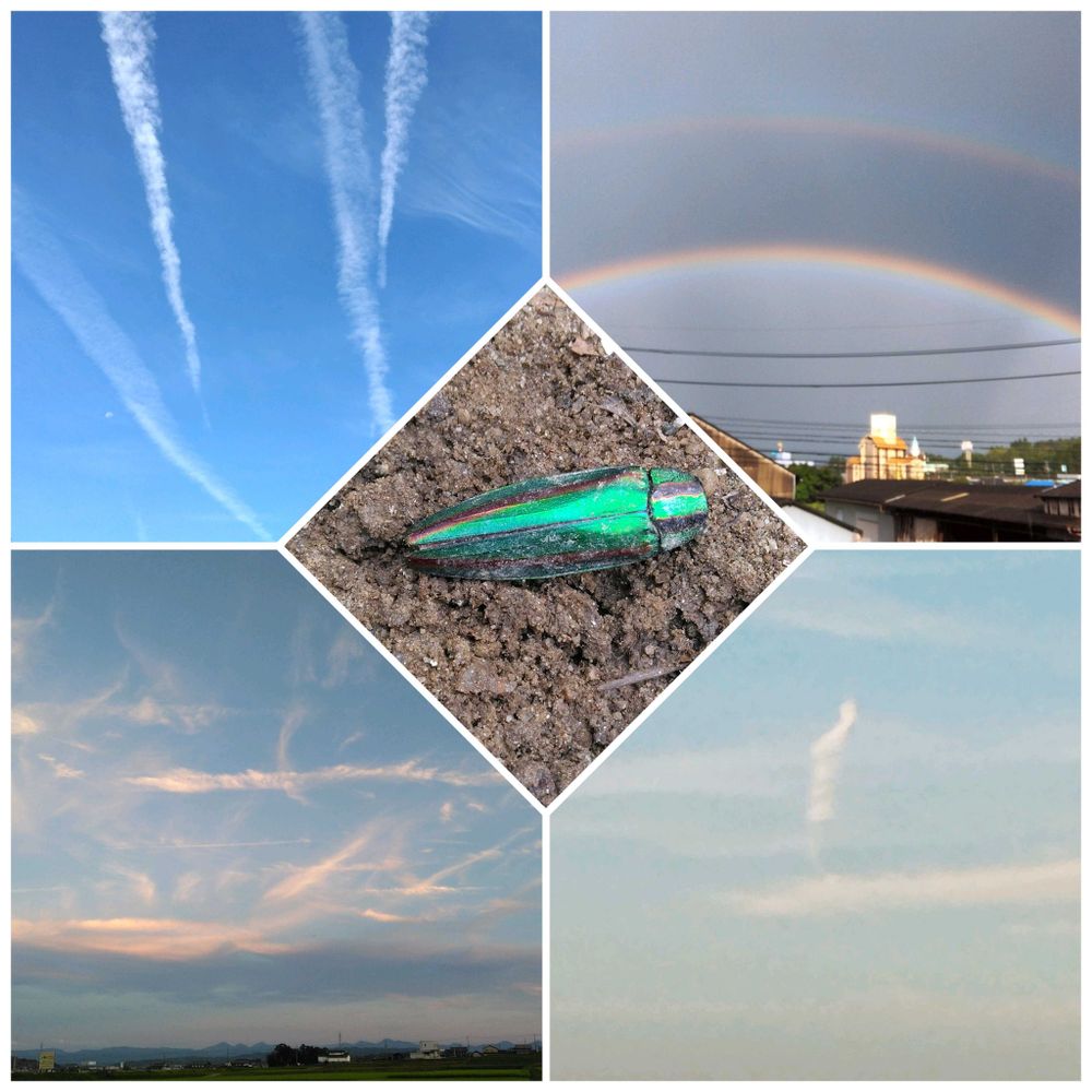 昨日の虹🌈と玉蟲をコラージュしました😊