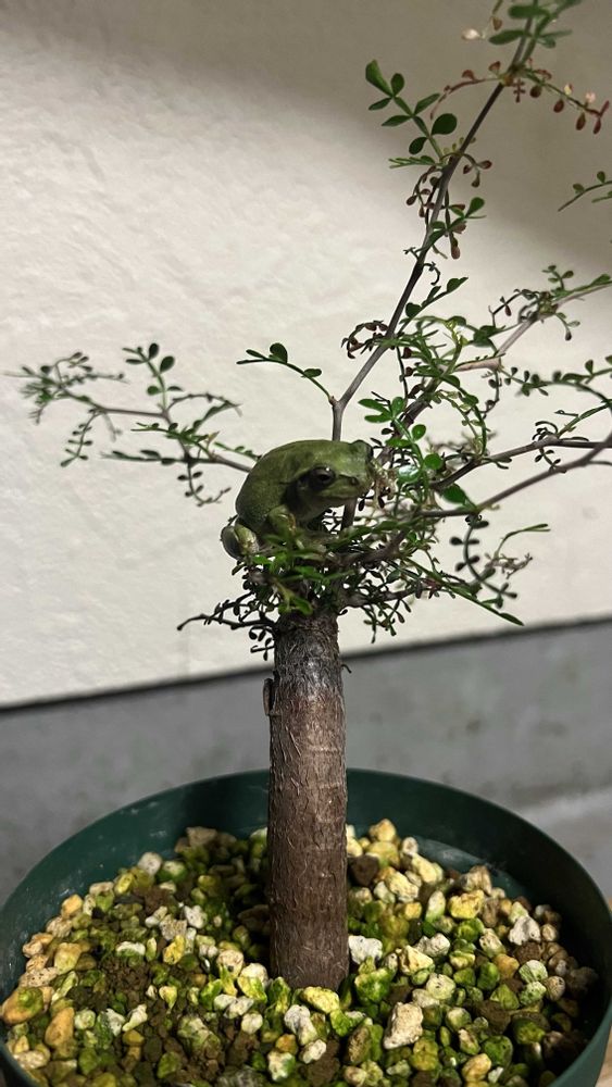 パキポディウスの葉が立派…とみほれてよく見たら確かにカエルさんですね!