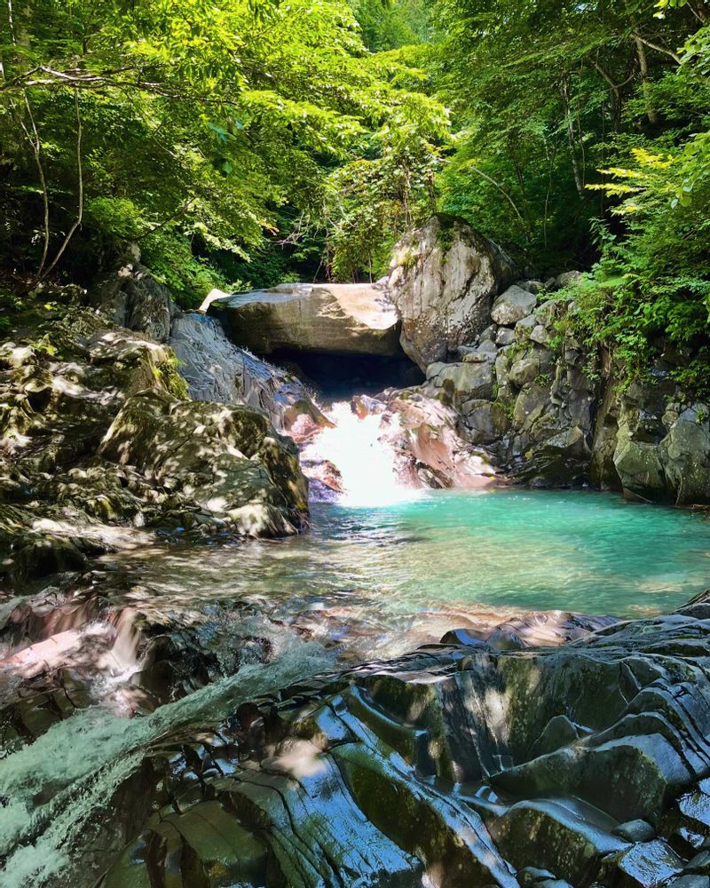 こんな淵がいくつも続くんですよ!そりゃ、泳ぎたくもなりますわな♪ 案の定、ボーイスカウトの皆さんがロープ張ってプチダイブを楽しんでました。親子連れで泳ぐ方たちもいて…釣りにはなりません😵🤣 …まぁ、みんな楽しそうですし、文句を言う気にもならず、僕も眺めて楽しませて頂きました!😄👍