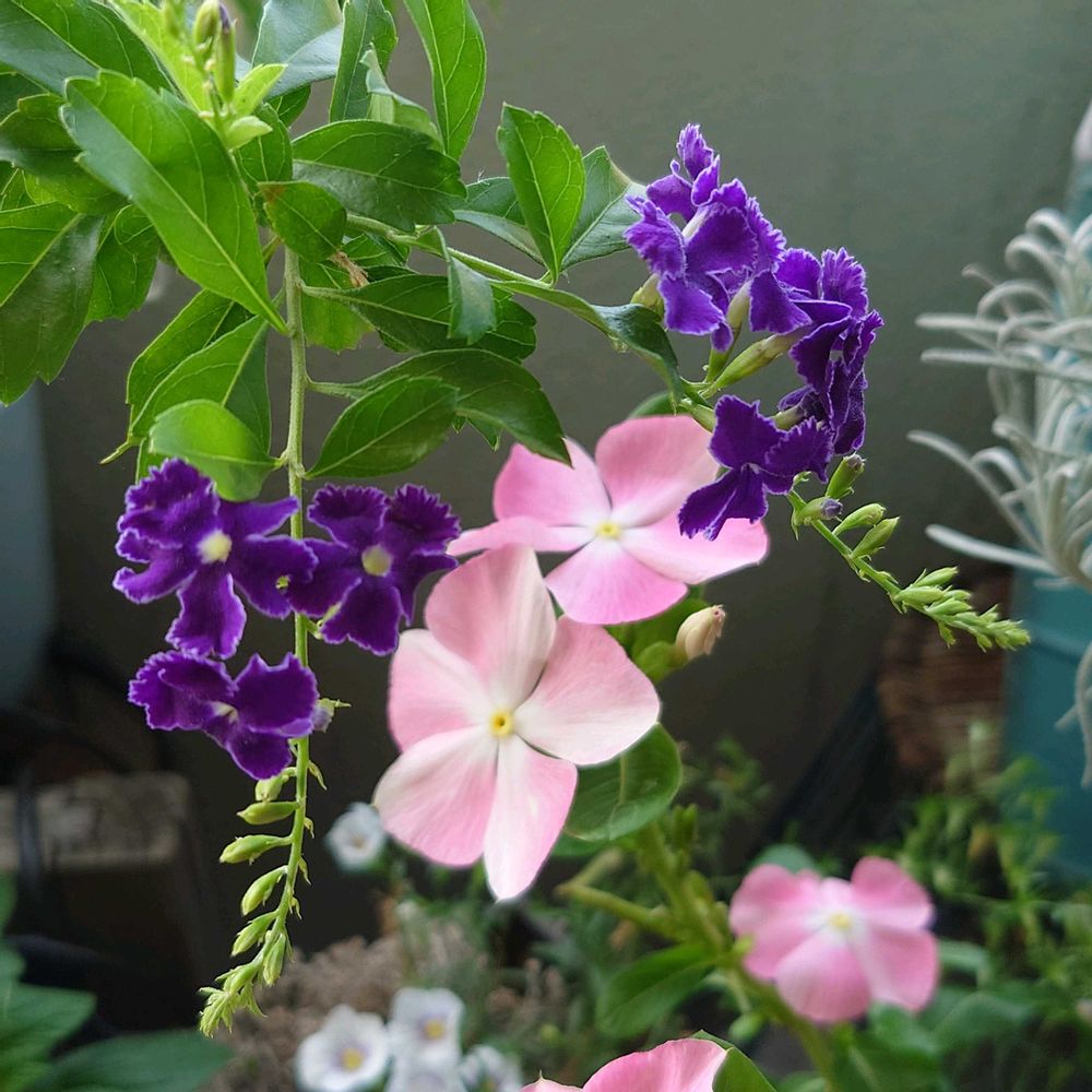 ベランダ,デュランタ 宝塚,日々草 桃のときめきの投稿画像