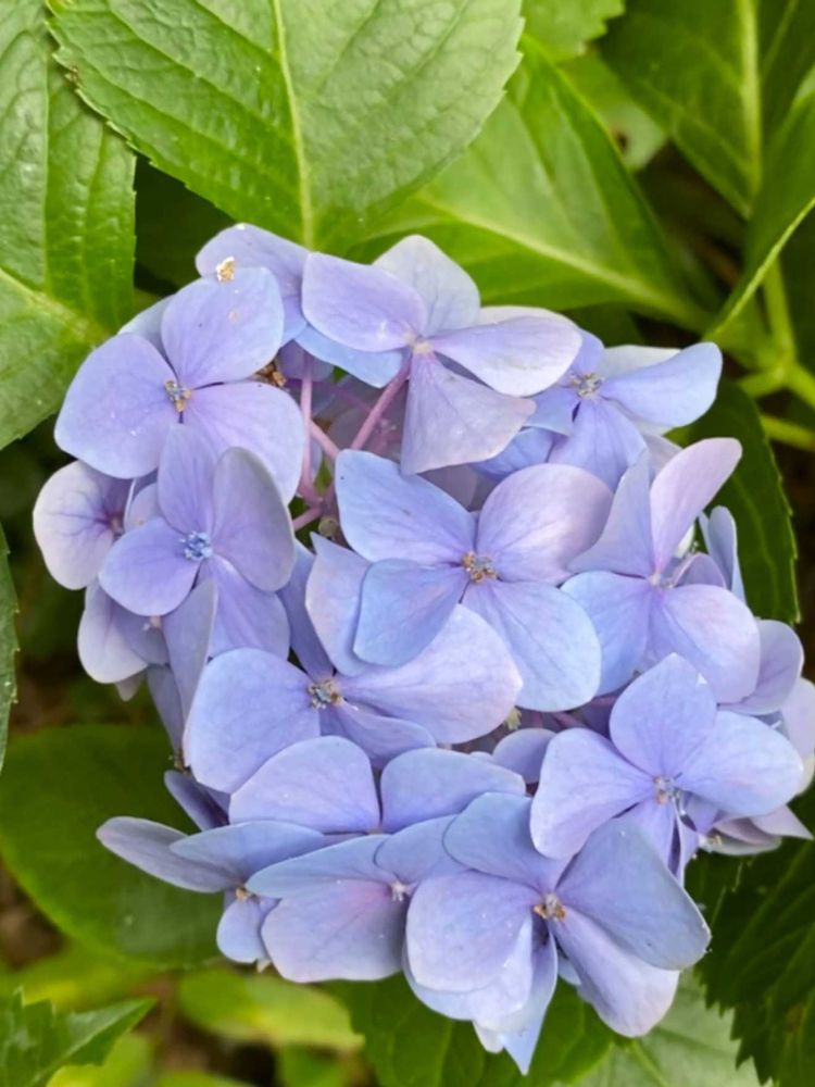 昔からあるアジサイは山側に追いやられて日影で育っていますので 毎年遅く咲き出します💜🩵🌿