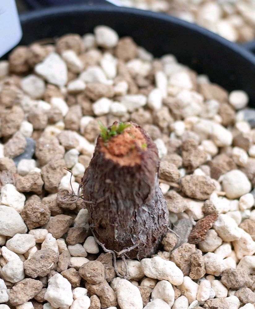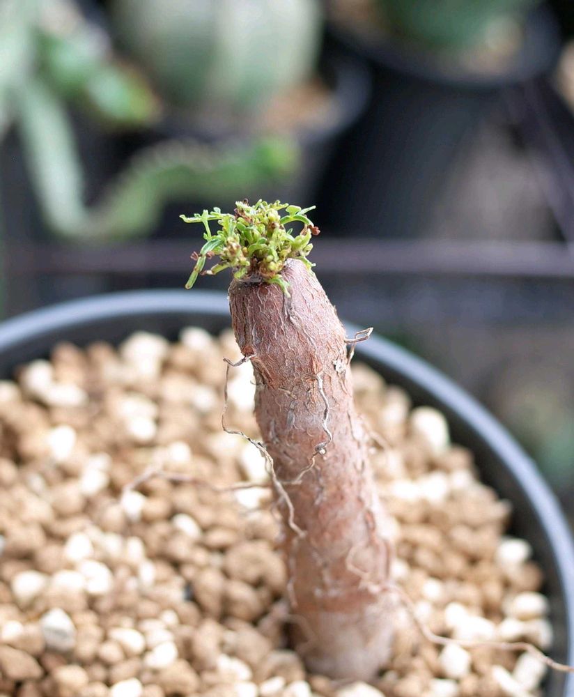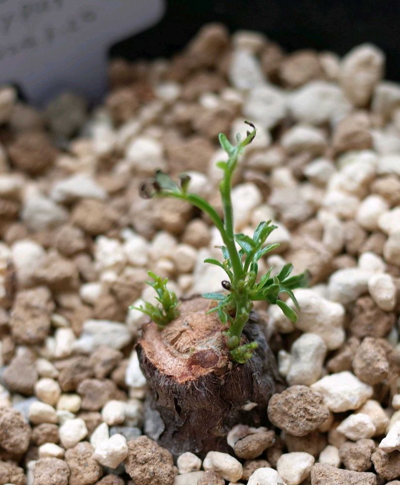 めちゃくちゃ小さい根からも新芽出ました!!実験的にダメ元で根挿ししてみたけど凄い!!ミニチュアパキプスとして育てます♪😁