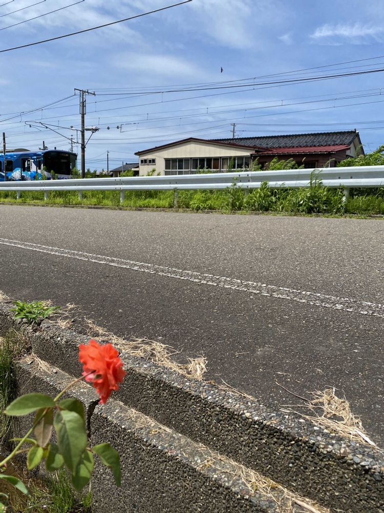 ①道端にこんな鮮やかな色のバラ🌹が.....😳