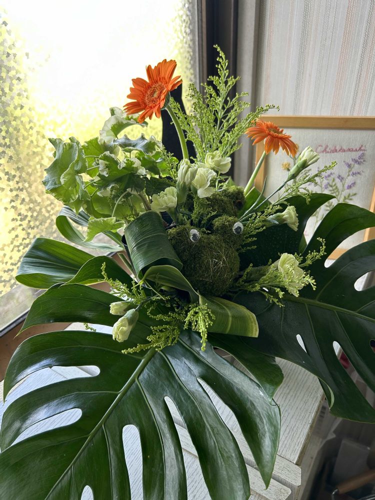 すご〜い😍アレンジメント🍃お上手ですねぇ🐸🎌カエルちゃんいますよね?可愛いデス♡