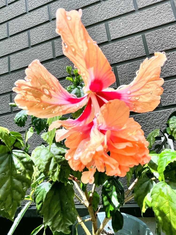 玄関アプローチ,ハイビスカス,ハイビスカス オレンジ・フラミンゴの投稿画像