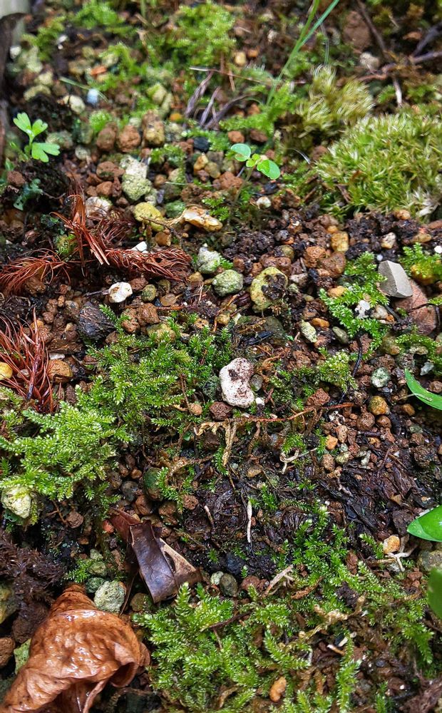 ①プランターに作った苔棄て場、茶色くなった苔をここにぶちまけて再生を待とうというものなんですけど、まずまずでないんかい?🤔