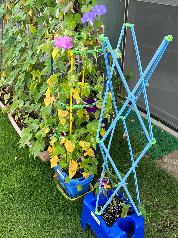 小1の孫が夏休みでお世話をする為に小学校から持ち帰ってきた朝顔が1輪だけ咲いています.。.:*💜