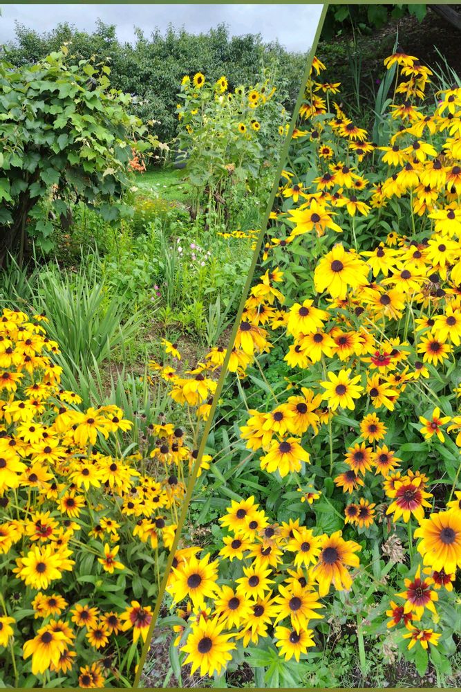 以前は、ケイトウが幅をきかせてたけど、今年はルドベキアらしい…ひまわり🌻もあって、ここはビタミンカラー🧡