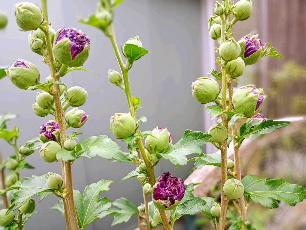 ✤ムクゲ「紫玉」の蕾にも色が見え始めましたが💜 これから開花までが長い😅