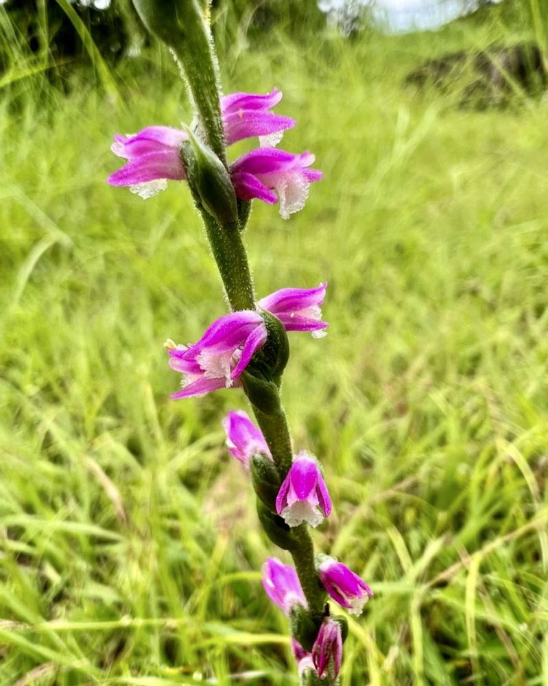 青空に向かって真っ直ぐ伸びるピンクのネジバナ清々しいですね🩷