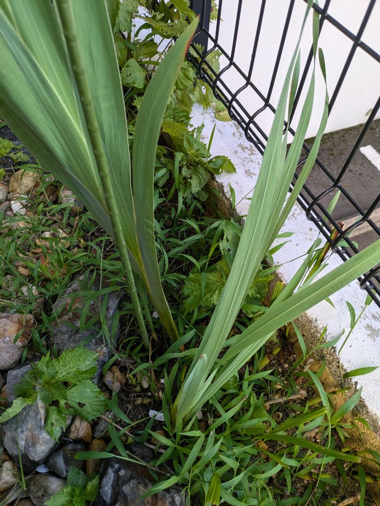 小さな球根がいつ落ちたのか、2枚目のように細く生えていて、知らないうちに育って花が咲きます。
