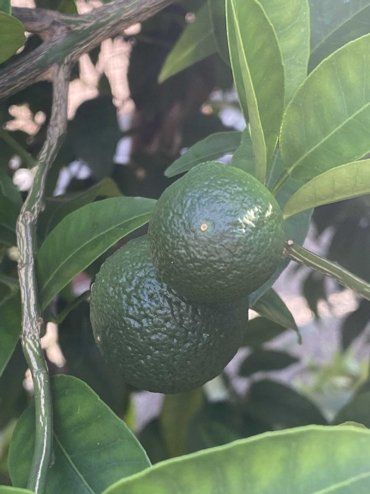 庭の湘南ゴールドの実です。まだ赤ちゃん👶です。今年は三つだけ😥昨年、枝を切り過ぎたかも😅