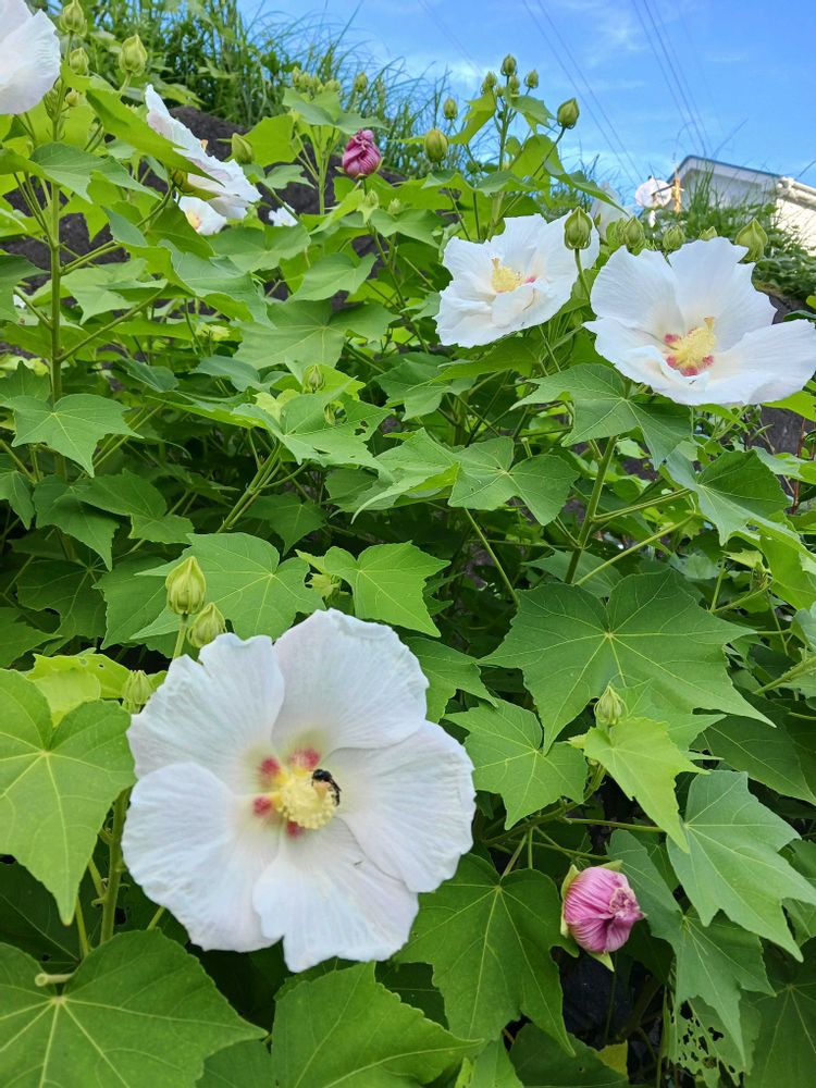 酔芙蓉は朝は白い花ですが夕方には赤く変わります😃