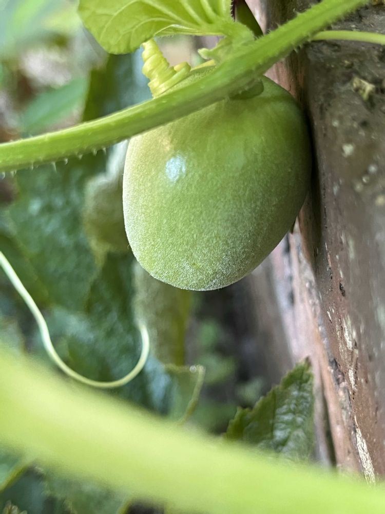 ベランダで大事に見守っている🍈ではなく、間引いて空いてるプランターに何気なく置いたこ(捨てた)この方が大きくなってます😅