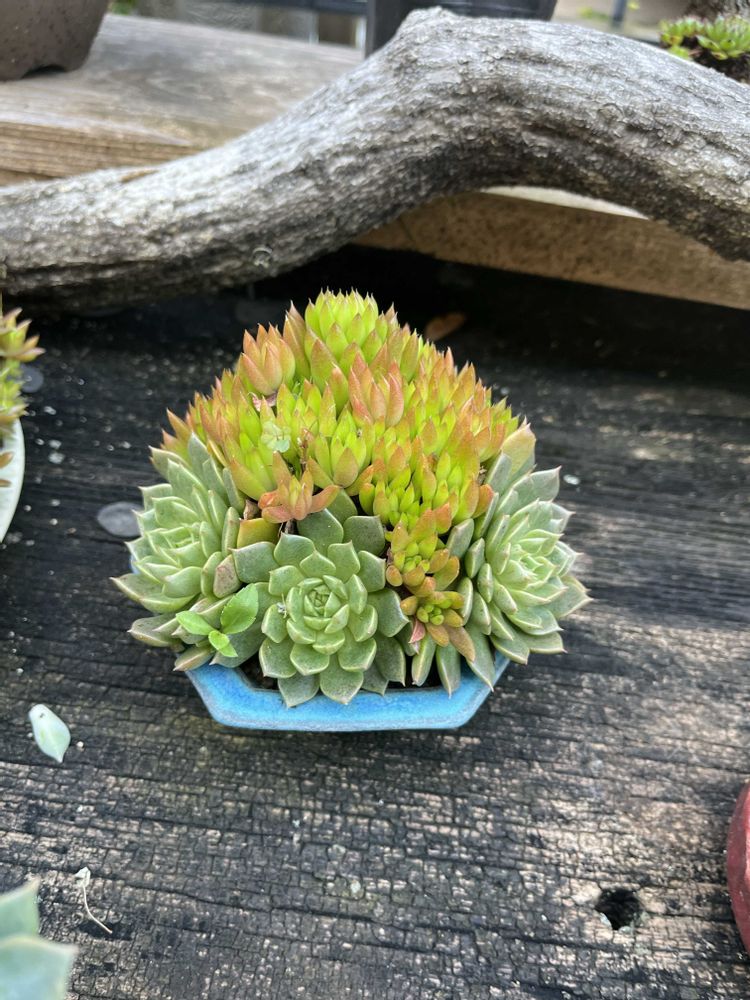 ②③④⑤は、お隣のご主人さまの作品。多肉も何年も盆栽仕立てで素敵に❣️