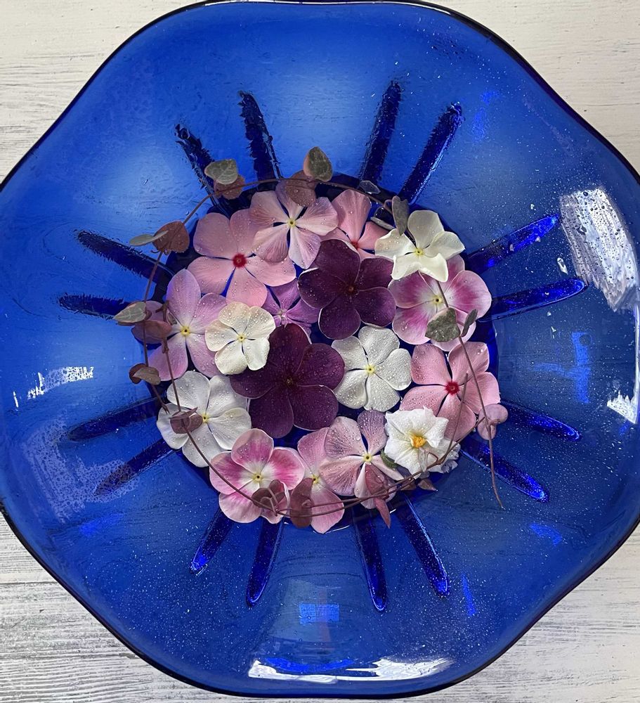 青い💙ガラスの器に