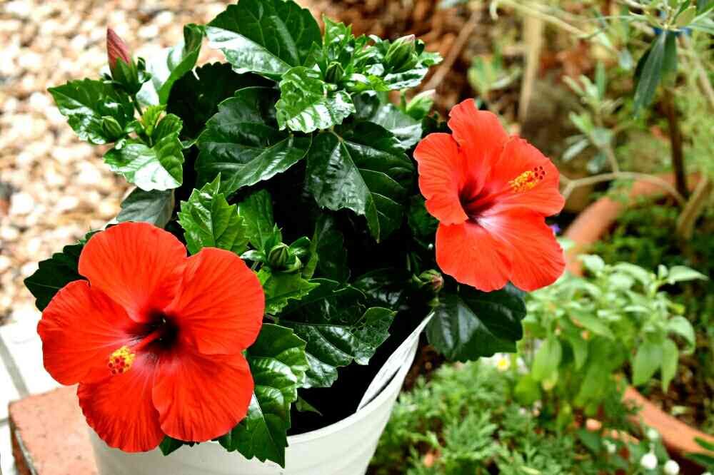 ハイビスカス、また咲いた~😆蕾もたくさんあります。嬉しいなぁ💕