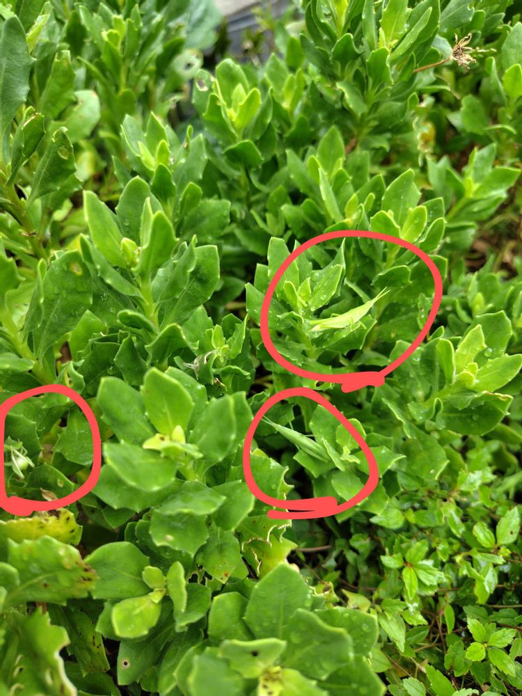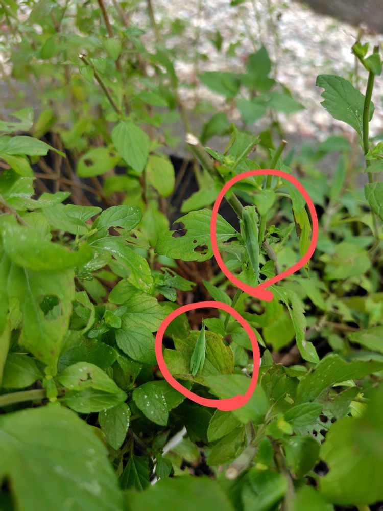 今の時期、主にショウリョウバッタが大繁殖し色々な葉が穴だらに……😵💫