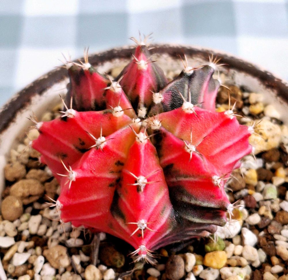 赤と黒のコントラストがはっきりしていて綺麗なサボテンさんです❣️😄👍️
