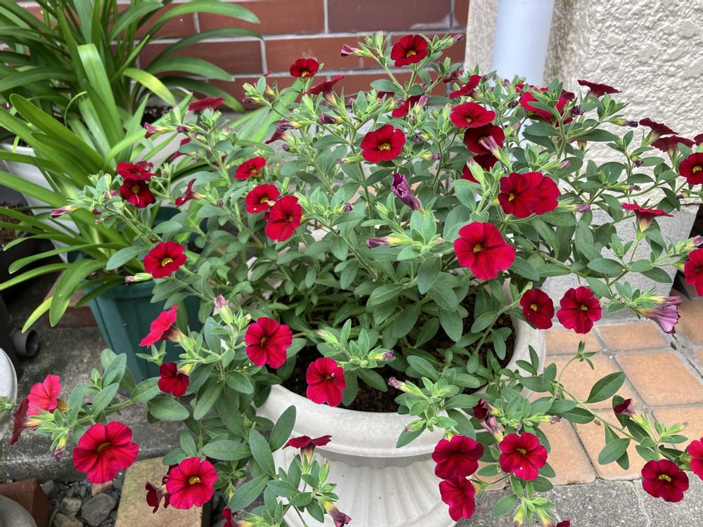 あまりにも暑い気温で お庭の植物も 悲鳴をあげてます 枯れてしまったり 葉焼けしたり そんな中ミリオンベルが可愛いく咲いてくれて 😮💨嬉しいです