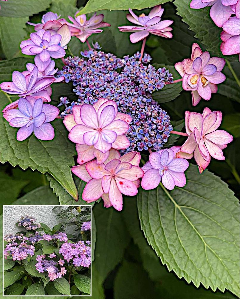 ガクアジサイ(額紫陽花),/ピンク•赤や紫の多彩にしても、シックな色合い額咲き花世界/の投稿画像