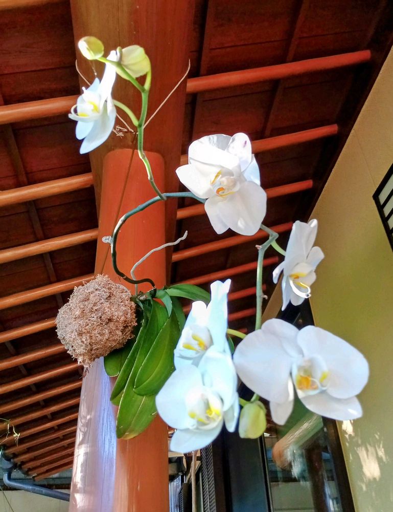 丈夫な胡蝶蘭だったみたいで(笑)水やりは庭先の池にドボン😂😂😂私のスパルタ栽培を経て、素晴らしい花を見せてくれました🌀⤴️⤴️⤴️