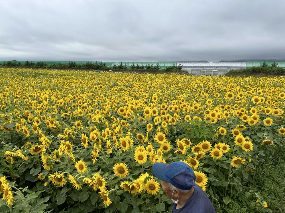 父と山元ひまわり畑に行ってきました。ちょうどいい櫓あり眺めが良かった。ひまわりも気持ちよく咲いていました