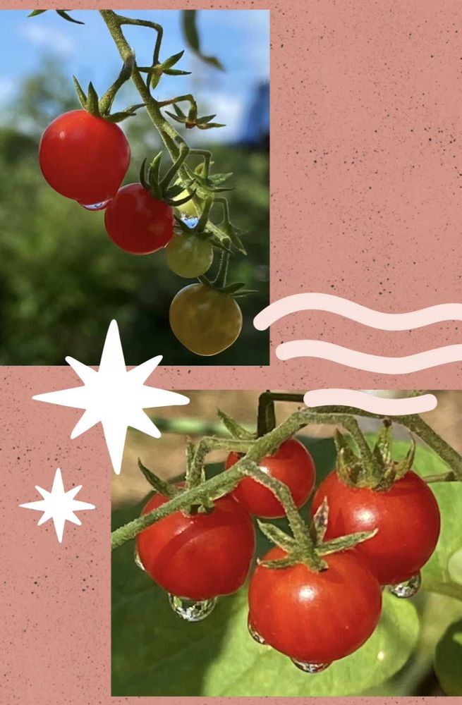 トマトを収穫しようと見たら昨夜の雨粒でキラキラ輝いてました✩•*¨*•.¸¸♪✧