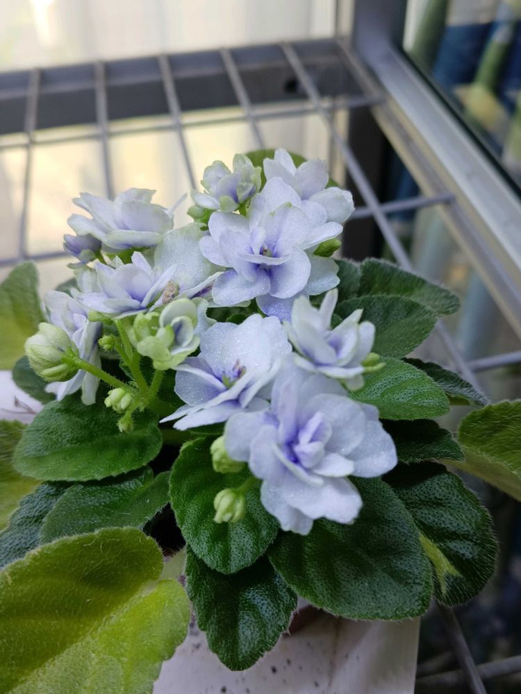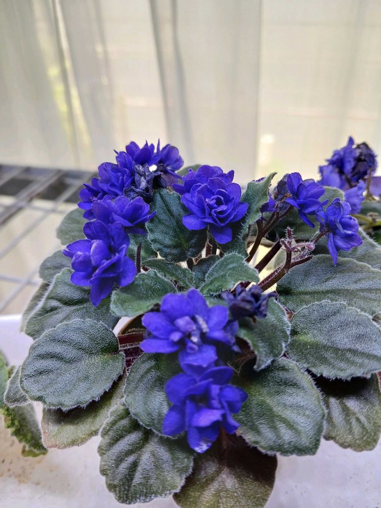 これらのセントポーリアは、ジリジリ焦げた外の植物とは別世界のエアコンのかかったリビングでのほほんと過ごしておりやす。