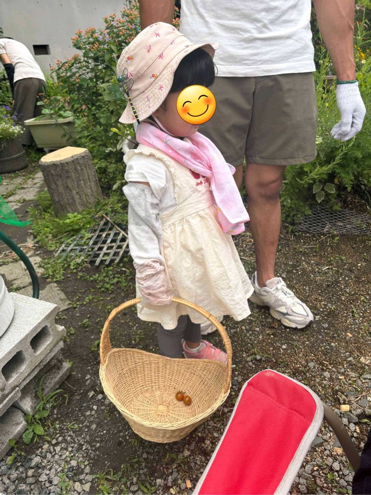大きな籠に小さなトマト🍅が二つ‼️かわゆいですね😊