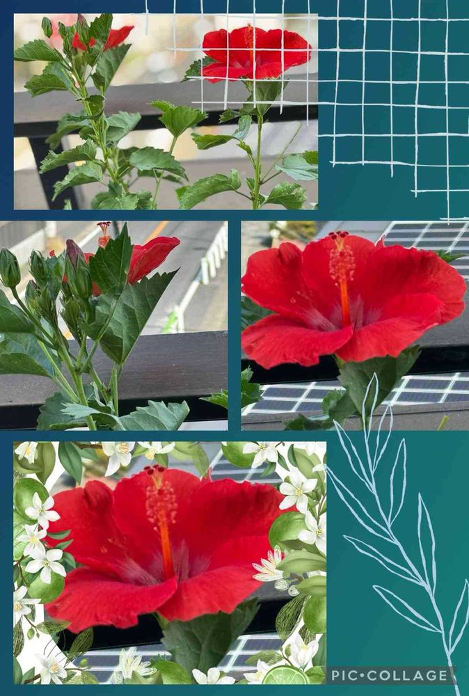 ベランダ,ハイビスカス 赤色,キングのつぶやきの投稿画像
