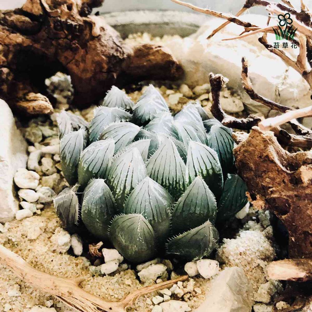 自生地の気候にならい、梅雨入りあたりから断水しているため、ハオルチアは成長点を守るように丸くなり、外側の葉が一部枯れています。