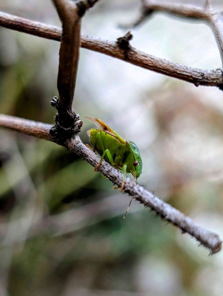 玄関のバレリーナ枯れ枝のカメムシは何だか可愛いから、見逃してあげた。
