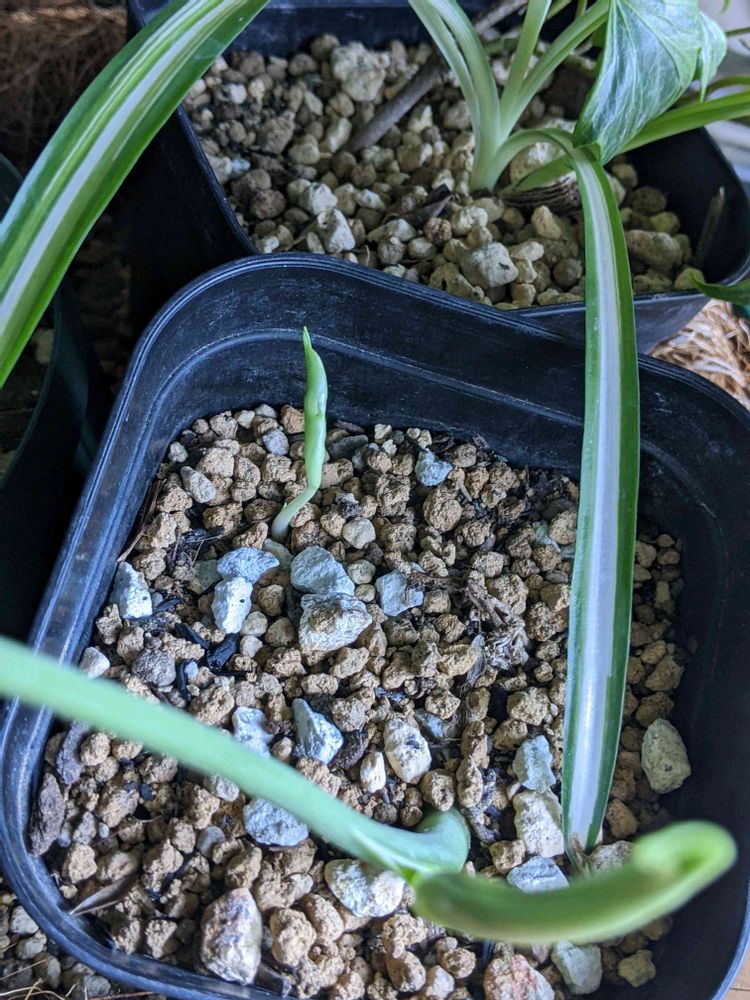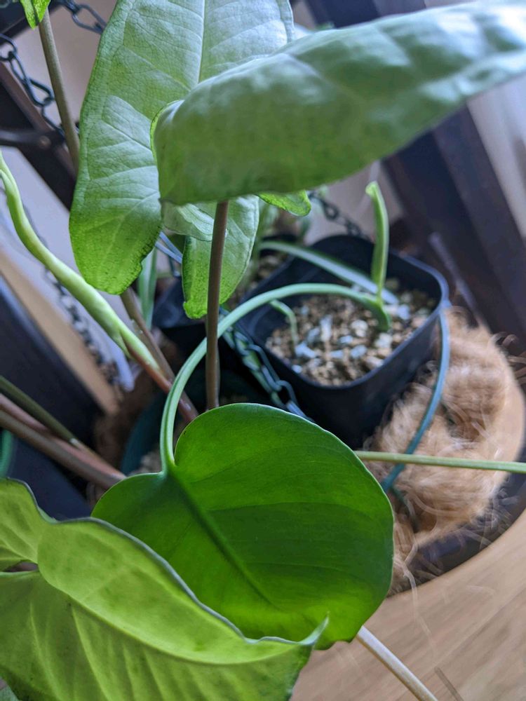 モンステラの新芽か、他の植物が紛れ込んだのかもよくわかりませんが、しばらくは現状維持で様子見です。